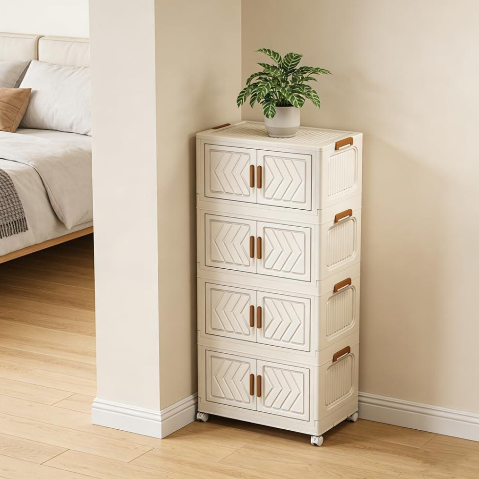 4-Tier Stackable Storage Bins with Wheels, Collapsible
