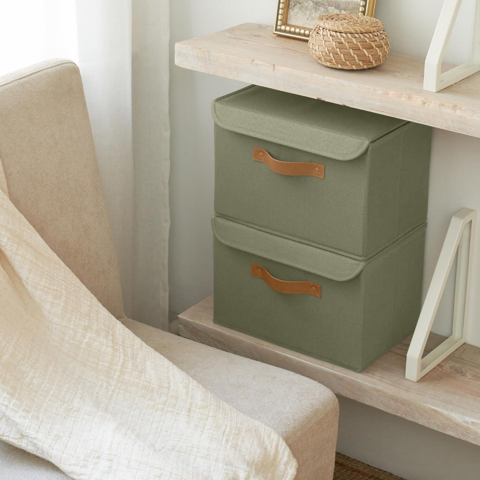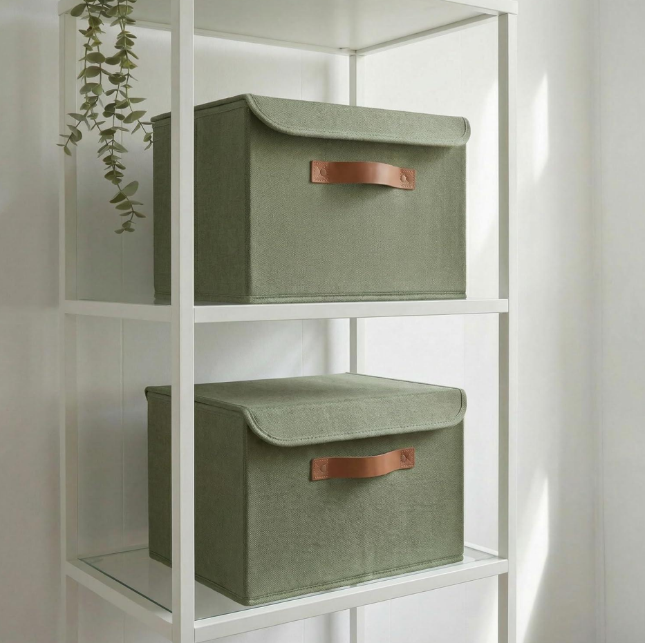 Set of 2 Large Linen Storage Boxes with Lids