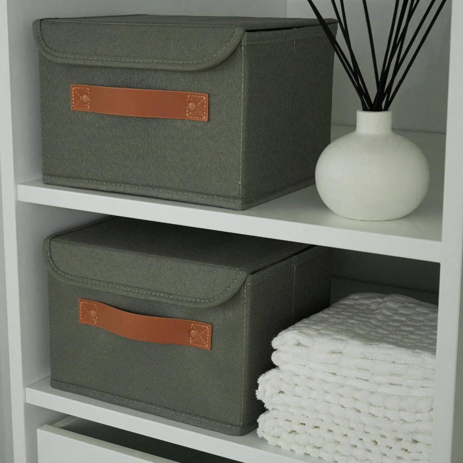 The lids are intended to fit securely to assist in protecting contents from dust. These boxes are suitable for use on shelves, in cupboards, or on other flat surfaces within domestic interiors. The construction is intended to maintain its form under normal use.
