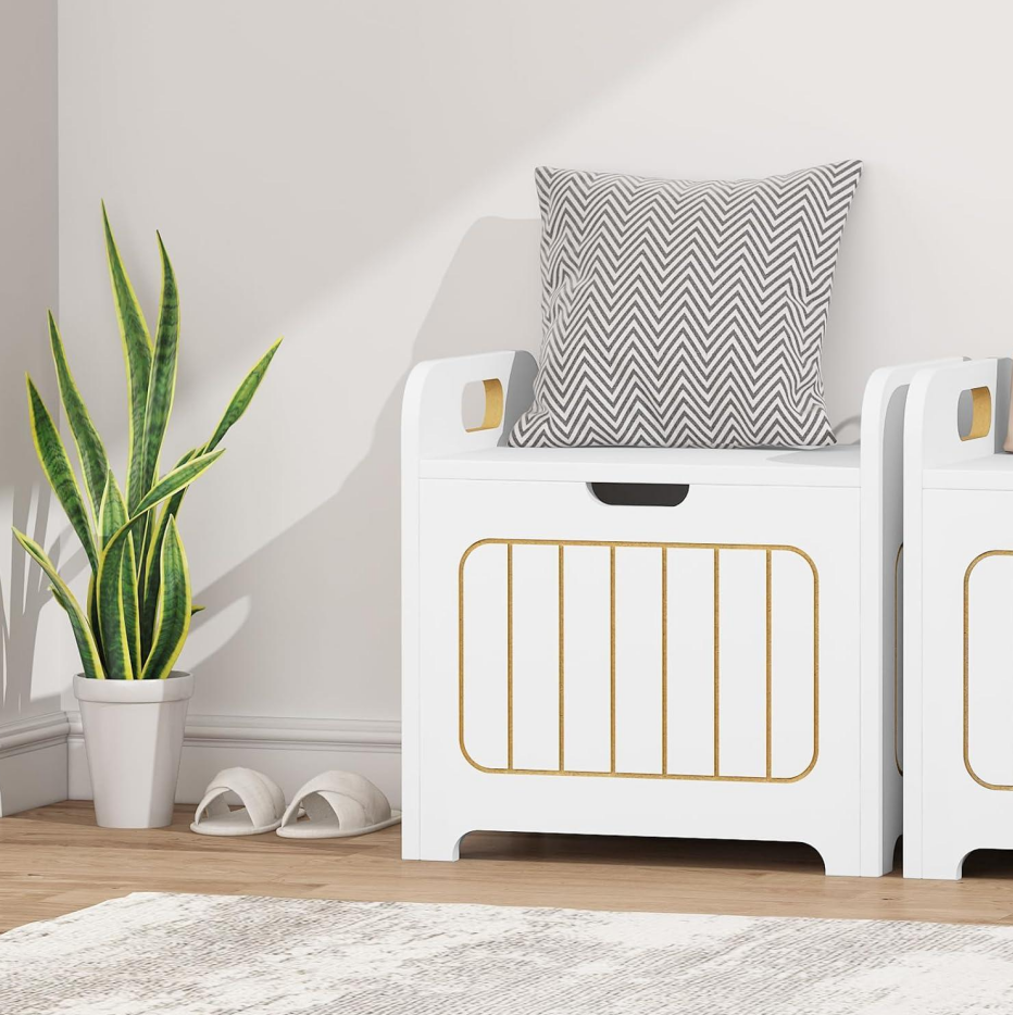 The square form provides a flat top surface suitable for placing items. This unit is intended for use in entryways, living rooms, or bedrooms where both storage and surface space are required.